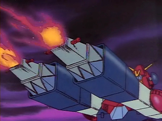 後半追加された武器。両肩から飛び出す短槍。 ![]() 写真 超電磁ロボコン・バトラーV(1976) 劇中より |