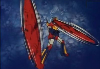 膝に装備されている十字手裏剣型の投てき武器。![]() ![]() 写真無敵超人ザンボット3(1977)劇中より |