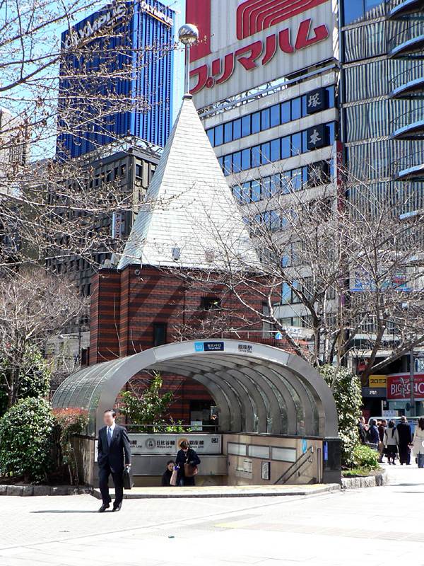 ▲C4出口。後ろのトンガリ屋根の建物は数寄屋橋交番(2006.3.20撮影)