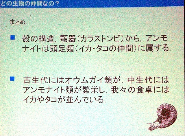 イカやタコの先祖はアンモナイトの一番古い仲間から生まれ、新生代に栄えた。(アンモナイトがいないので)