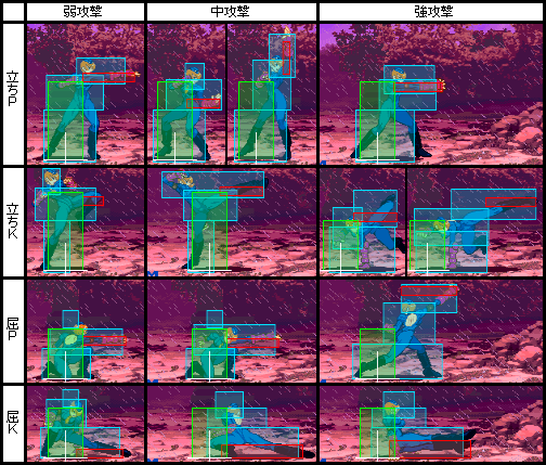 | 通常技 | 中、強攻撃のヒットボーナスによるゲージ増加量が他のキャラに比べて多い。 |