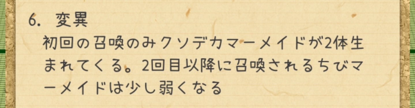 新:初回の召喚のみクソデカマーメイドが2体生まれてくる。2回目以降に召喚されるちびマーメイドは少し弱くなる