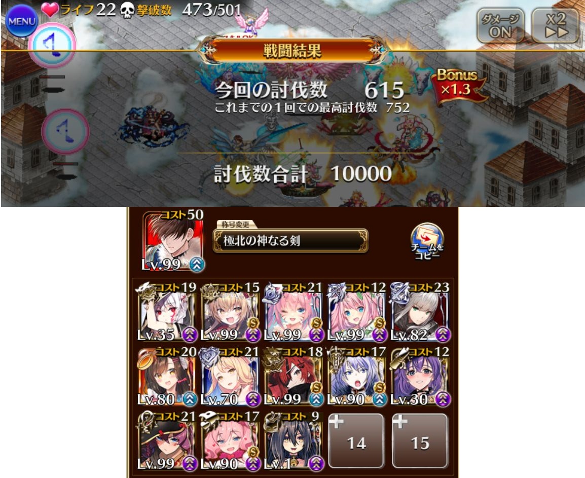 大討伐、カリスマ消費が0になったからやってみたけど1回目はゴブリンクイーン倒せないままザコ501匹討伐しちゃってクリアだったわ