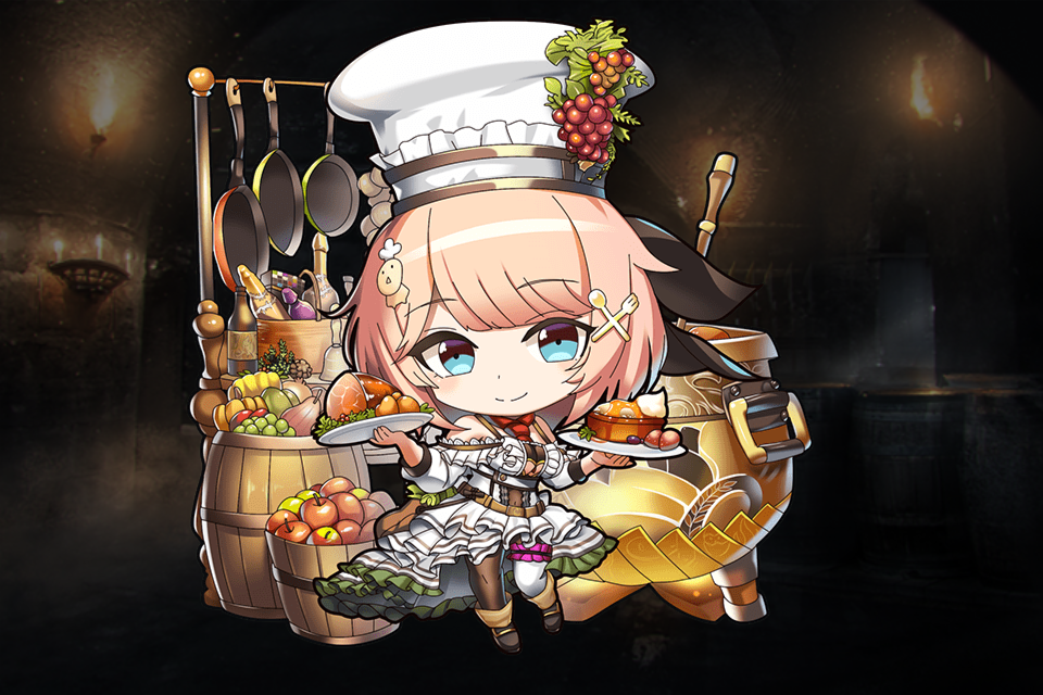 「第五回人気闘兵決定戦」開催に合わせて2020/09/10に配布されたユニットで、ゴールドレアのちび料理長。