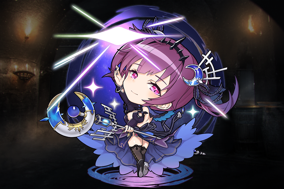 「第七回人気闘兵決定戦」にて総合第1位に輝いた冥界の魔術師ヘカティエが、覚醒後の姿でちびユニット化したものである。