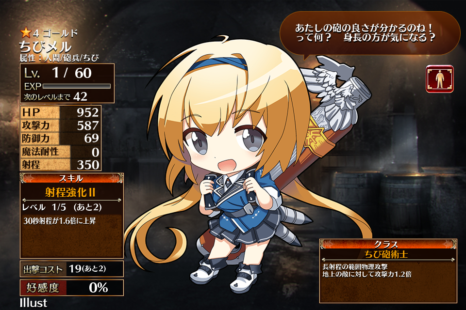 ただいま情報提供所にて情報募集中です。2018/05/02に名声召喚排出ユニットとして実装されたちび砲術士。ちびユニットになった砲術士メル。