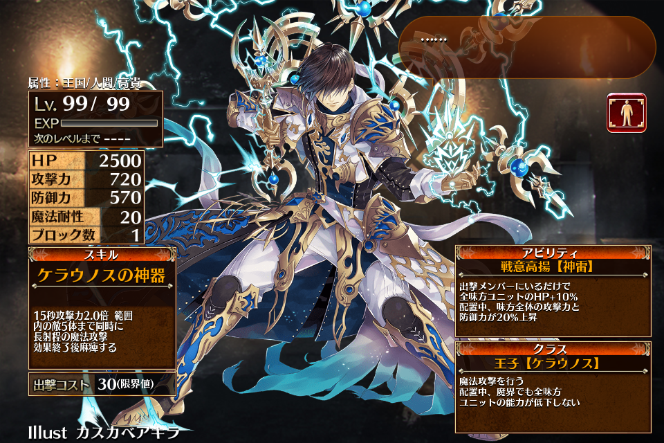 | 王子【ケラウノス】Lv4 | Lv99(200) | ケラウノスの神器Lv2 | ||||||||||||