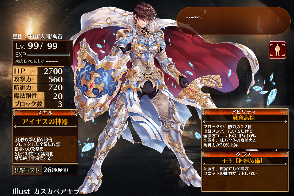 | 王子【神器装備】Lv4 | Lv99(200) | アイギスの神器Lv2 | ||||||||||||