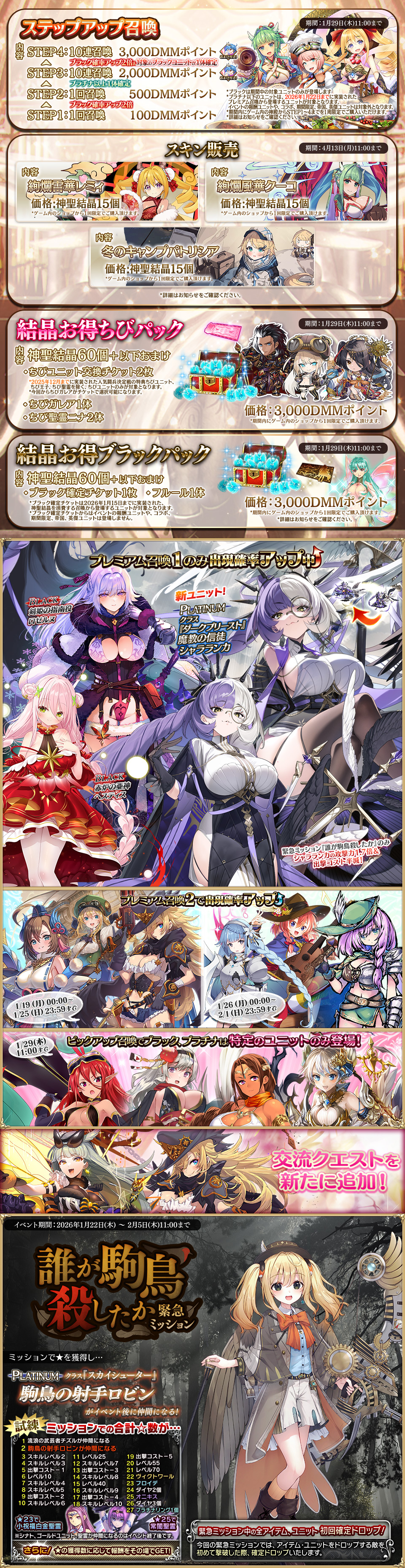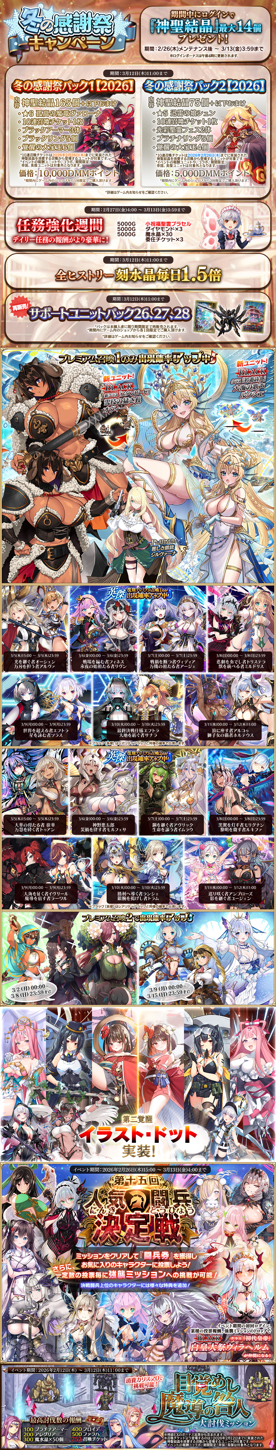 不定期衣装替えユニットの復刻召喚実施に伴い、今後は木曜定期メンテナンス後に、月曜0時更新分の情報も含め、全て掲載いたします。