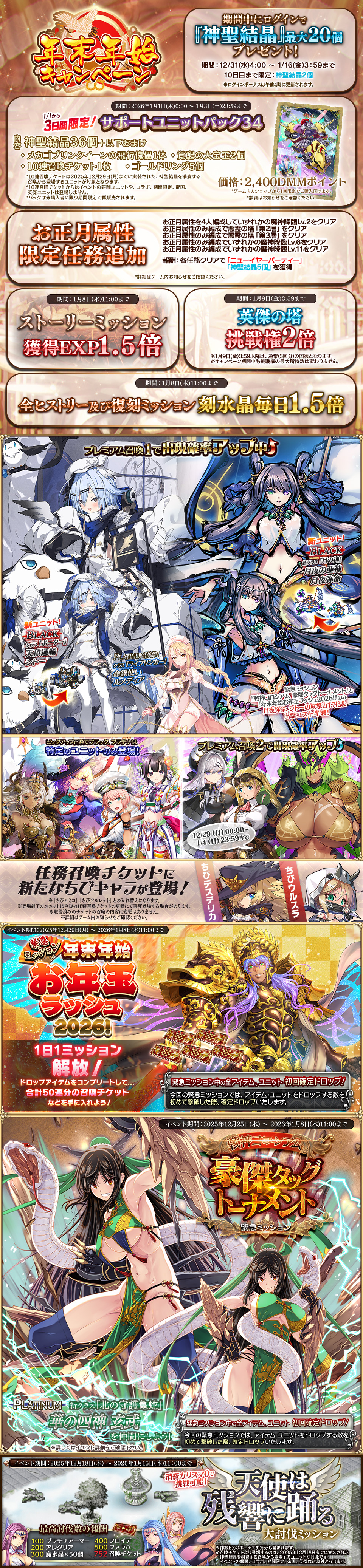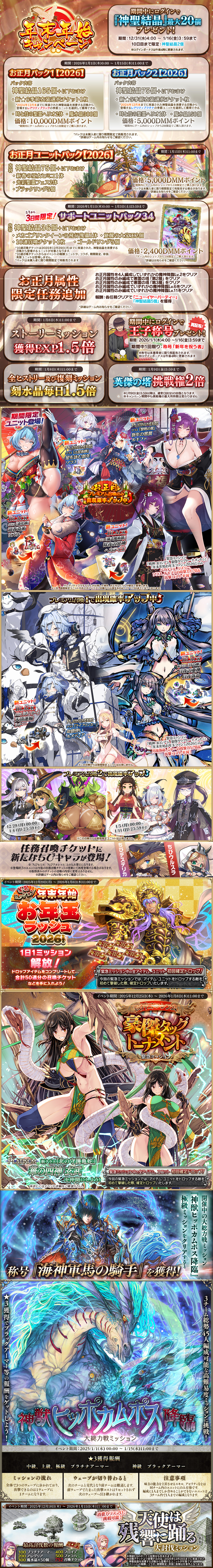 ・イベント、復刻ミッションの掲載内容につきまして、木曜定期メンテナンス後と、月曜0時に分けて更新しておりましたが、