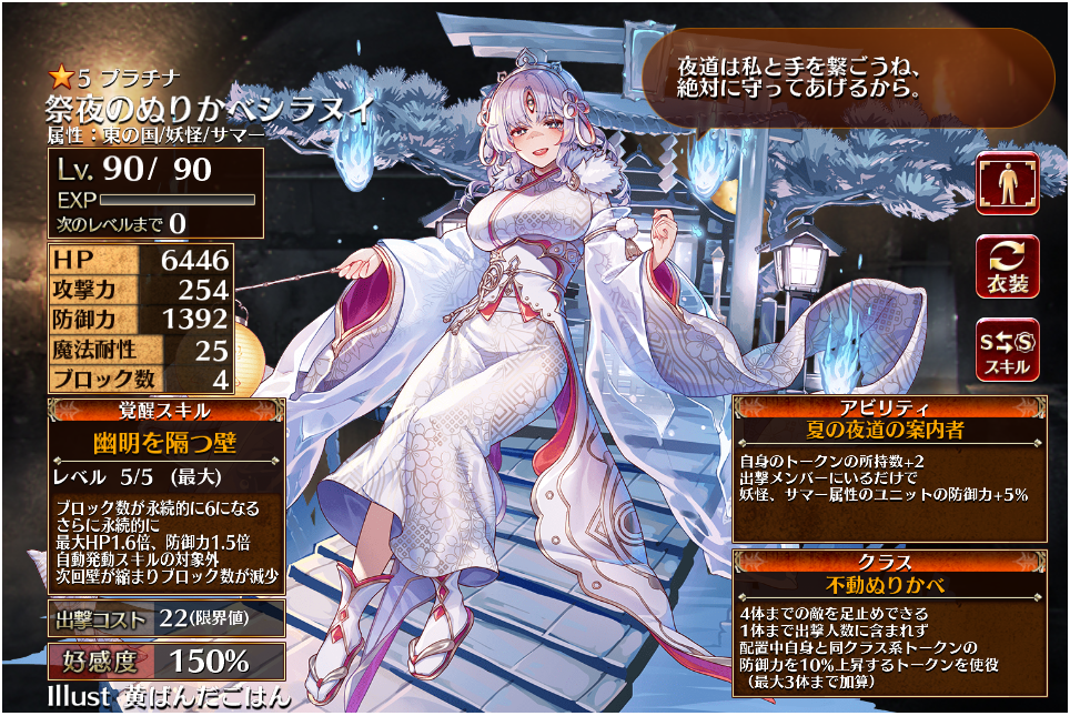 | 不動ぬりかべ | Lv1 | 4723 | 202 | 1052 | 25 | 4 | 25 | 22 | HP+720 防御力+72 防御力+72 | 跳ね返しの妖壁 ↓ ↑ 幽明を隔つ壁 | 夏の夜道の案内者 | |||