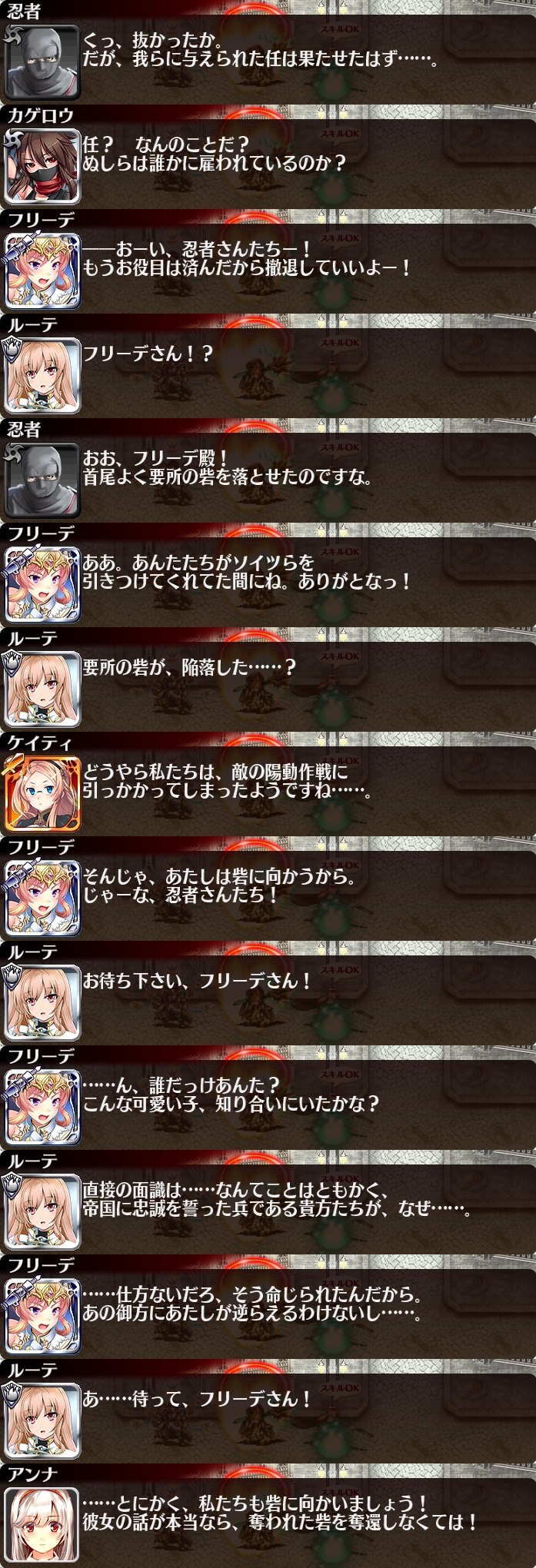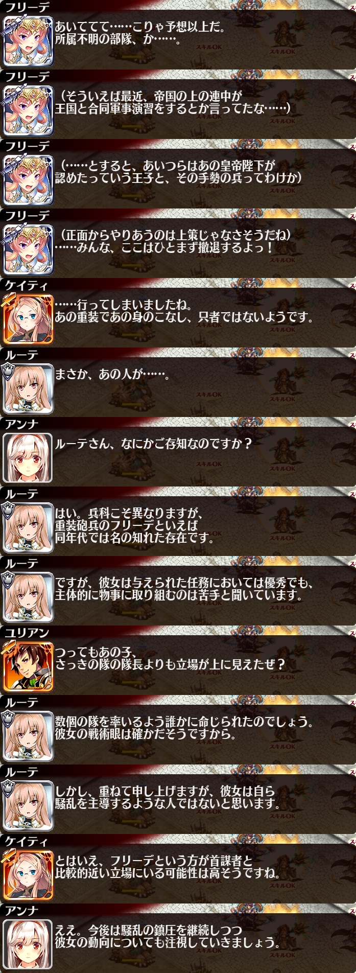 - 期間限定復刻ミッション中にドロップする「刻水晶」を集めると、交換所メニューで「帝国重装砲兵フリーデ」と交換することができる。