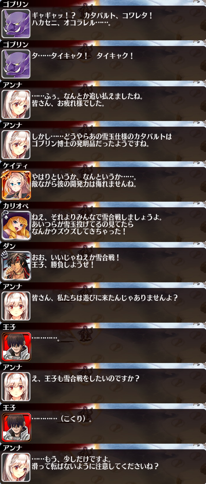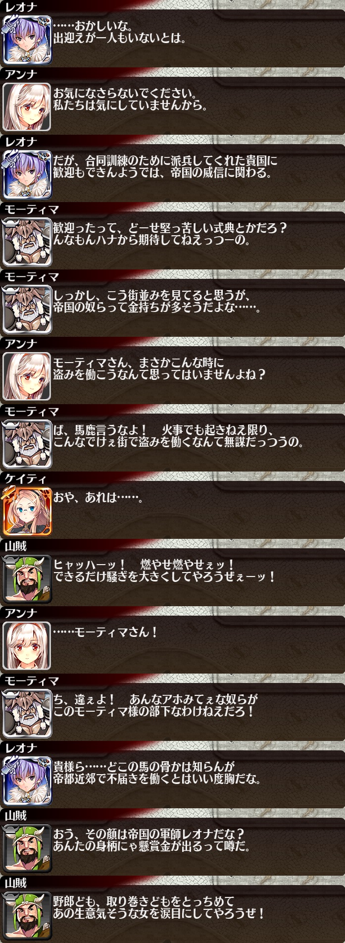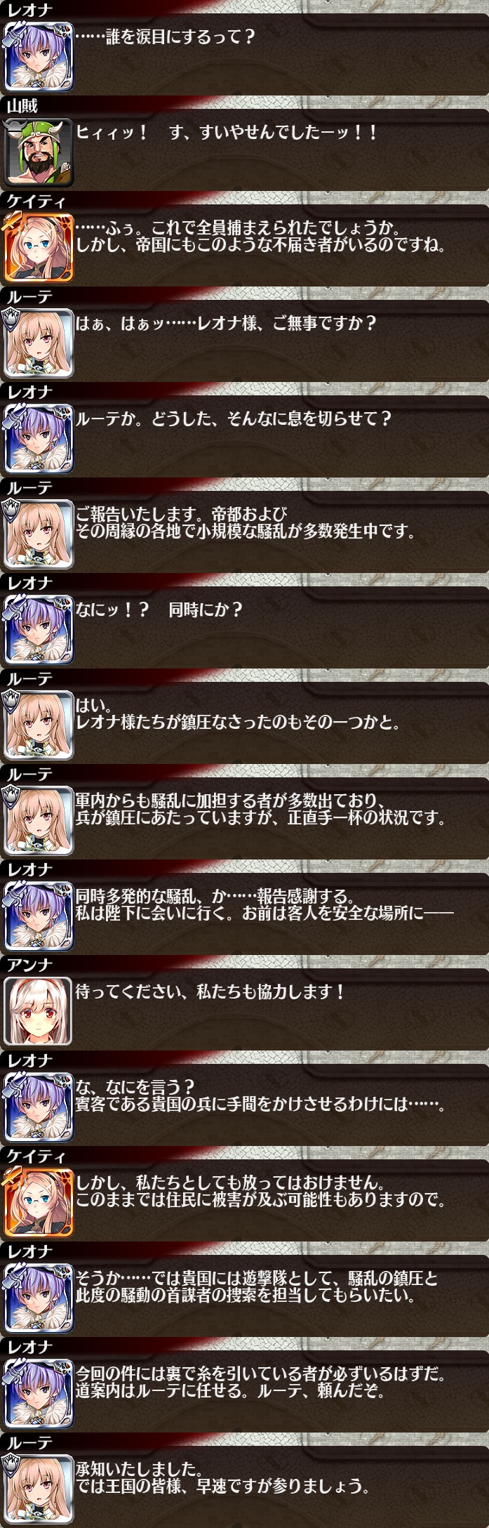 | 帝都を覆う暗雲 | 25 | 1050 | 30 | 35 | 一般兵A【重装】Lv5x2 | 銅聖霊サラ | 樽ビール | |