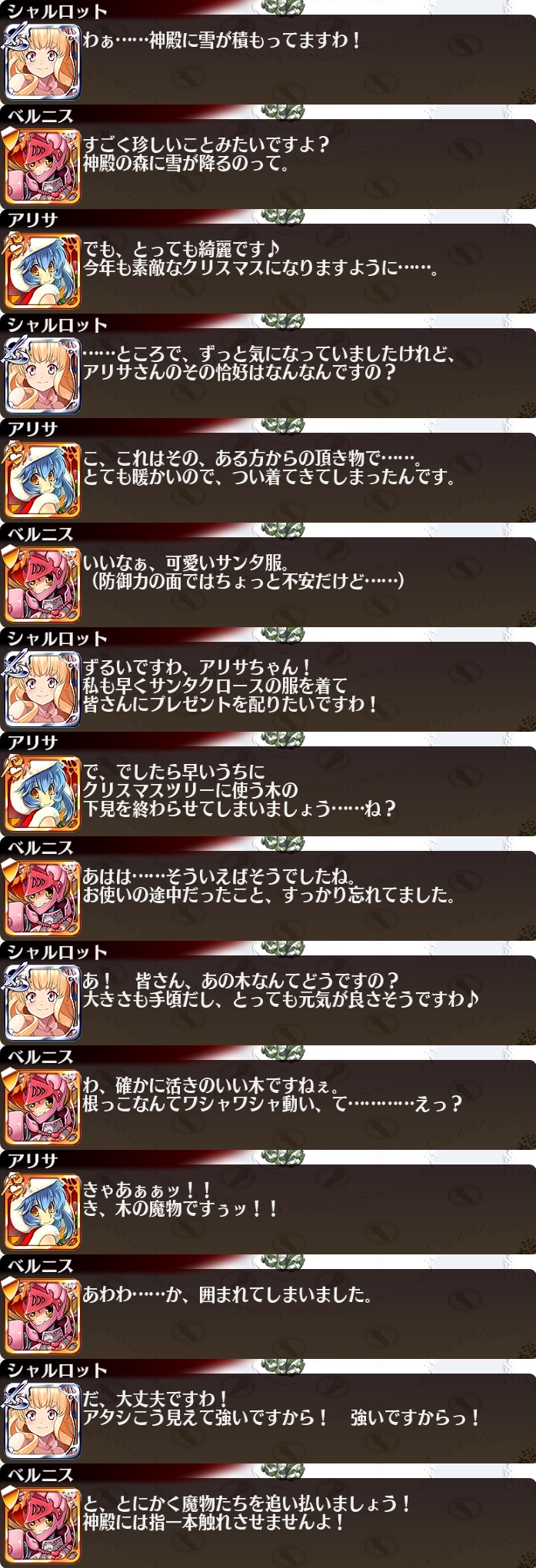| クリスマス・パレード | 75 | 3000 | 20 | 84 | 魔女カリオペLv15 | 癒し手ドルカLv15 | 白金聖霊セリア | |