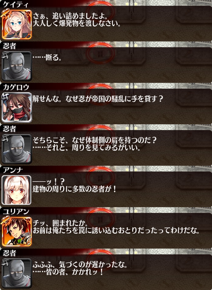 | 謎の重装砲兵 | 25 | 1275 | 45 | 47 | 暗殺者セシリーLv8 | 帝国歩兵ディルクLv8x2 | 花束 | |