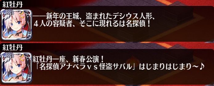 | 新春恒例 破魔矢祭 | 25 | 1200 | 10 | 37 | 聖霊女王グラディス | 銅聖霊サラ×2 | 一般ワイン | |