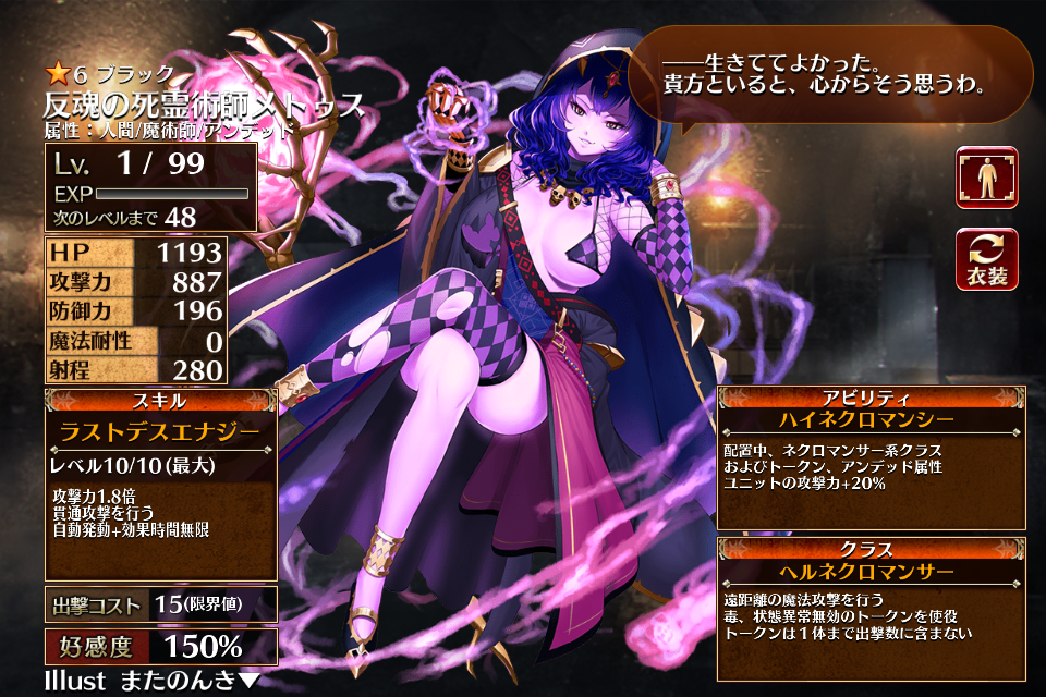 収集型緊急ミッション「死霊術師と反魂の至宝」の主役にして報酬ユニット。2016/02/18に配布された。