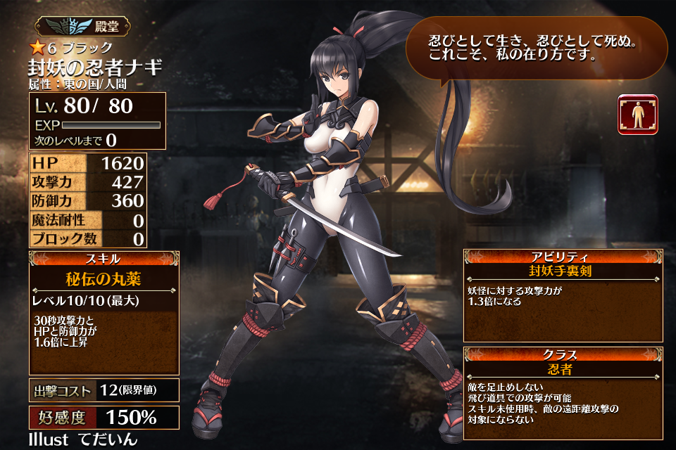 また好感度ボーナスは攻撃と防御の半々で、特に防御の最終値は補正の高さも手伝って忍者としてはかなり高い数値になる。