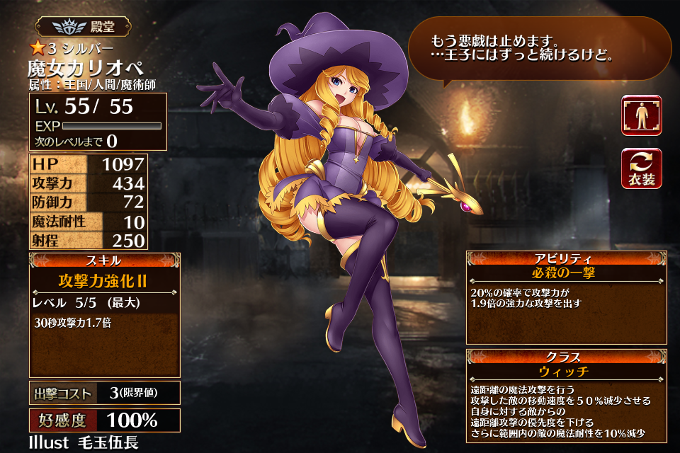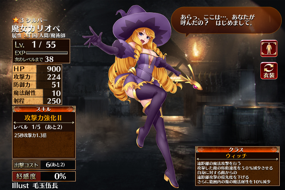 サービス開始時から実装されているレアリティシルバーのウィッチ。
