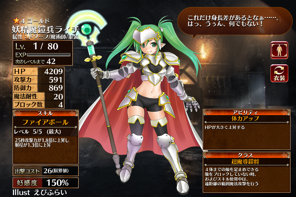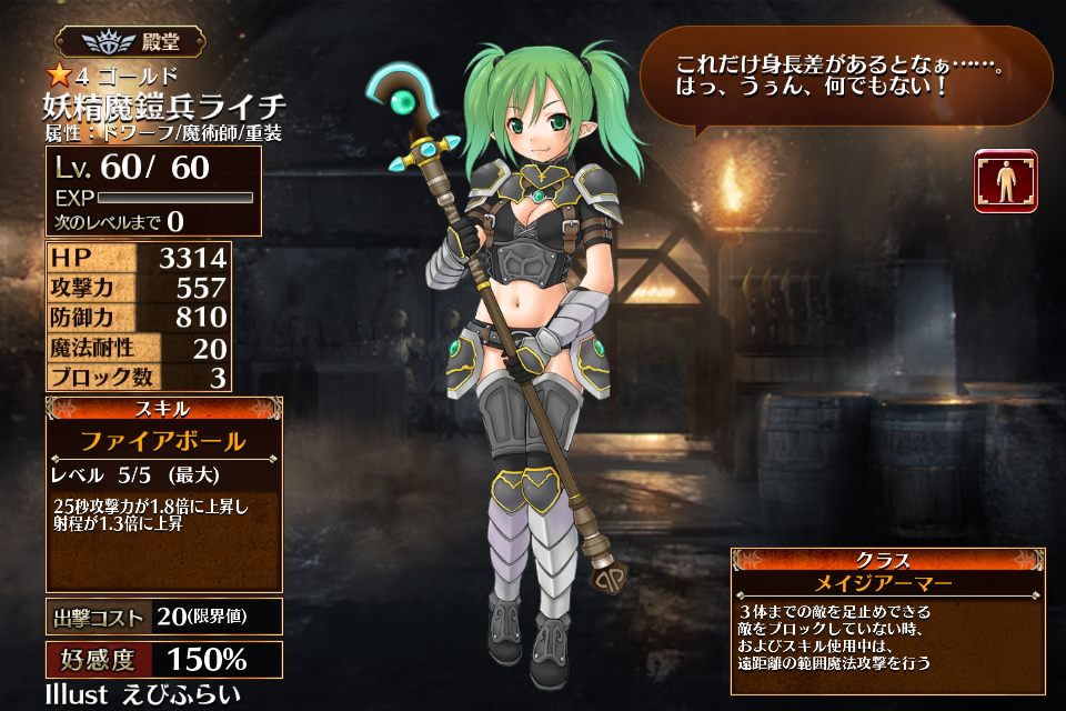 スキルは魔導重装兵ジェシカと同じ「ファイアボール」で、性能がよく使いやすい強化スキル。