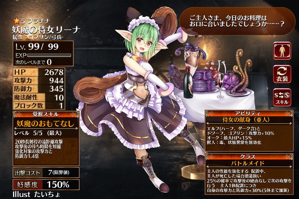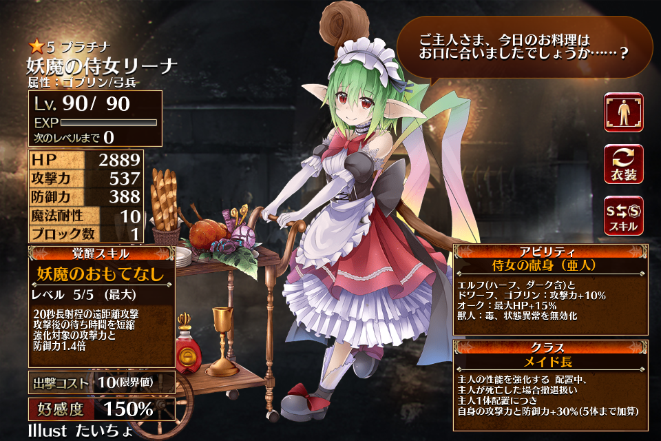 2017/08/24に実装された、亜人を強化するバフを持ったプラチナレアのメイド。
