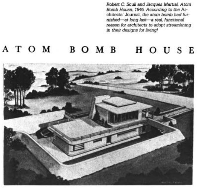 Robert C Scull and Jacques Martial. Atom Bomb House, 1946, According to the Architects' Journal, the atom bomb had furnished -- at long last -- a real, functional reason for architects to adopt streamlining in their designs for living!