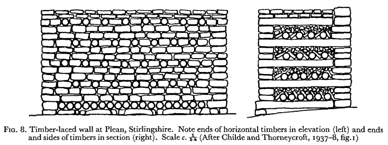 これらの構造物からは、石灰やセメントは発見されていない。それらはすべて、岩の融合によって、多かれ少なかれ固められているという特徴を有している、強い熱によって生じた融合は、砦によって異なり、同じ砦の中でも違っている、いくつかの例では、石が部分的に溶けたり、灰状になったりしている。石の隣接する縁部がしっかりと接合されるように融合されている。多くの場合、岩の欠片はガラス質のエナメルのようなコーティングで覆われて、全体がひとつに融合されている。まれに、壁全体がひとつの硬い塊のガラスになっている場合もある、