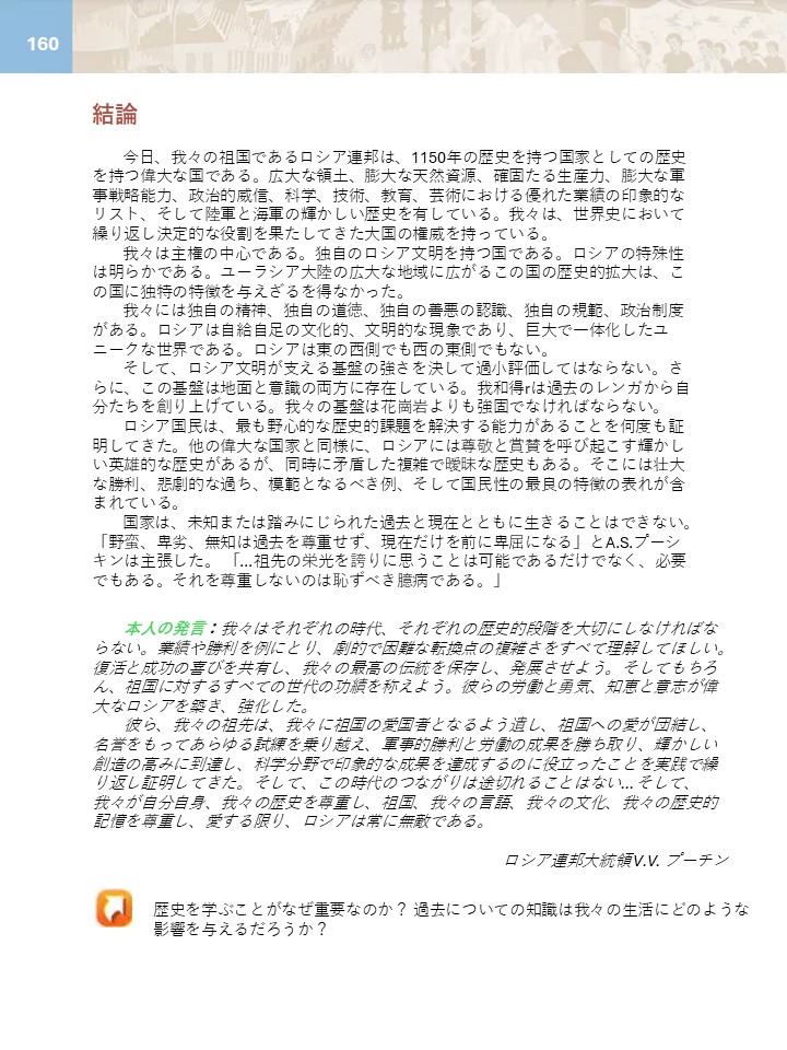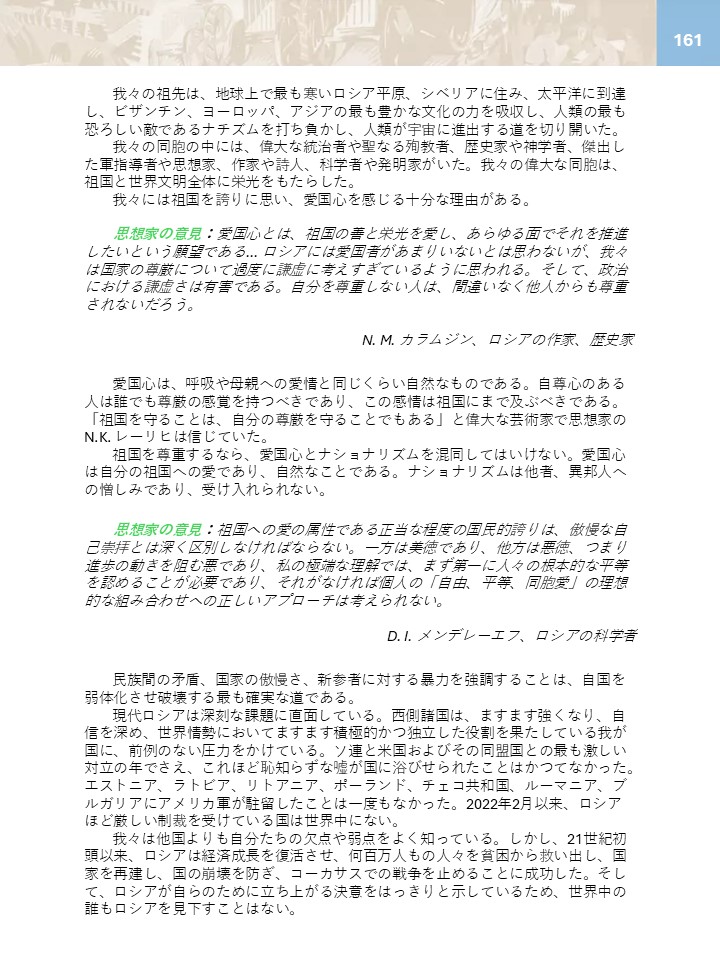 そして、9学年用も麗しくも「愛国心とナショナリズムは異なるもの」と記述している。現実にクレムリンが行っている現実とは何の関係もないようだが...
