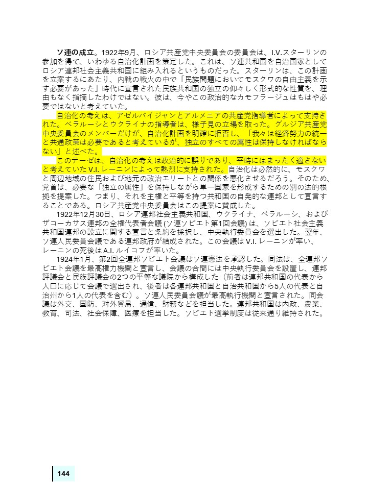 - 「レーニンの「連邦化」方式は、ずっと後になって明らかになるが、将来ソ連が崩壊する方式となる」