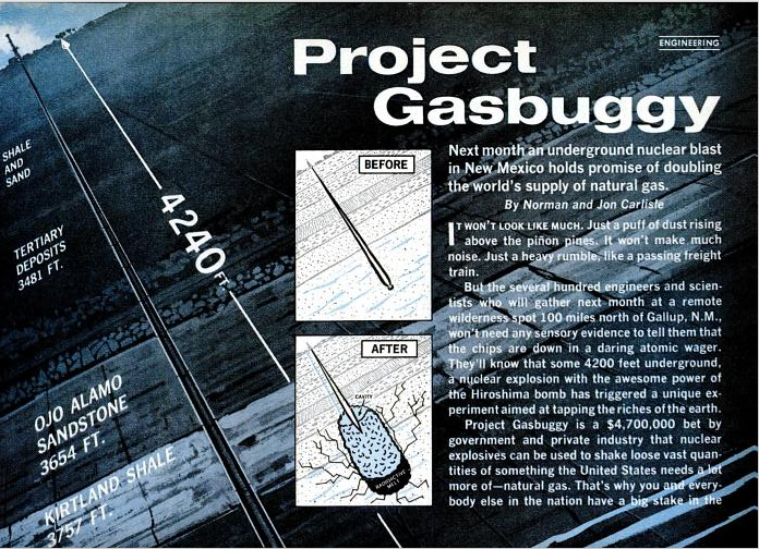 Popular MechanicsはこのProject Gasbuggy実験前に、紹介記事を掲載している。