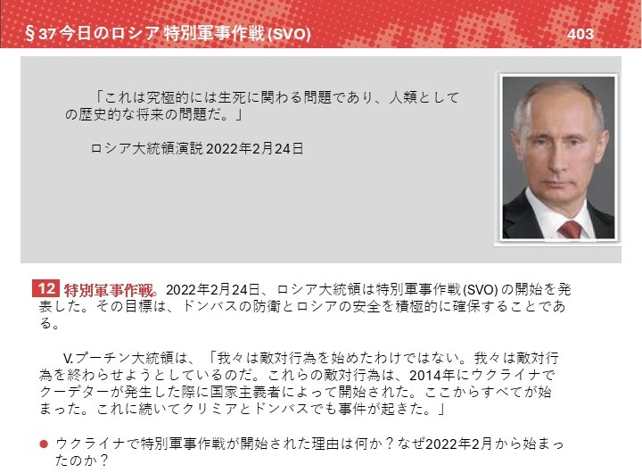 2023年秋学期からロシアで使われている11学年用のロシア史(1945〜21世紀)教科書の、特別軍事作戦を取り上げた部分から、第12節「特別軍事作戦」