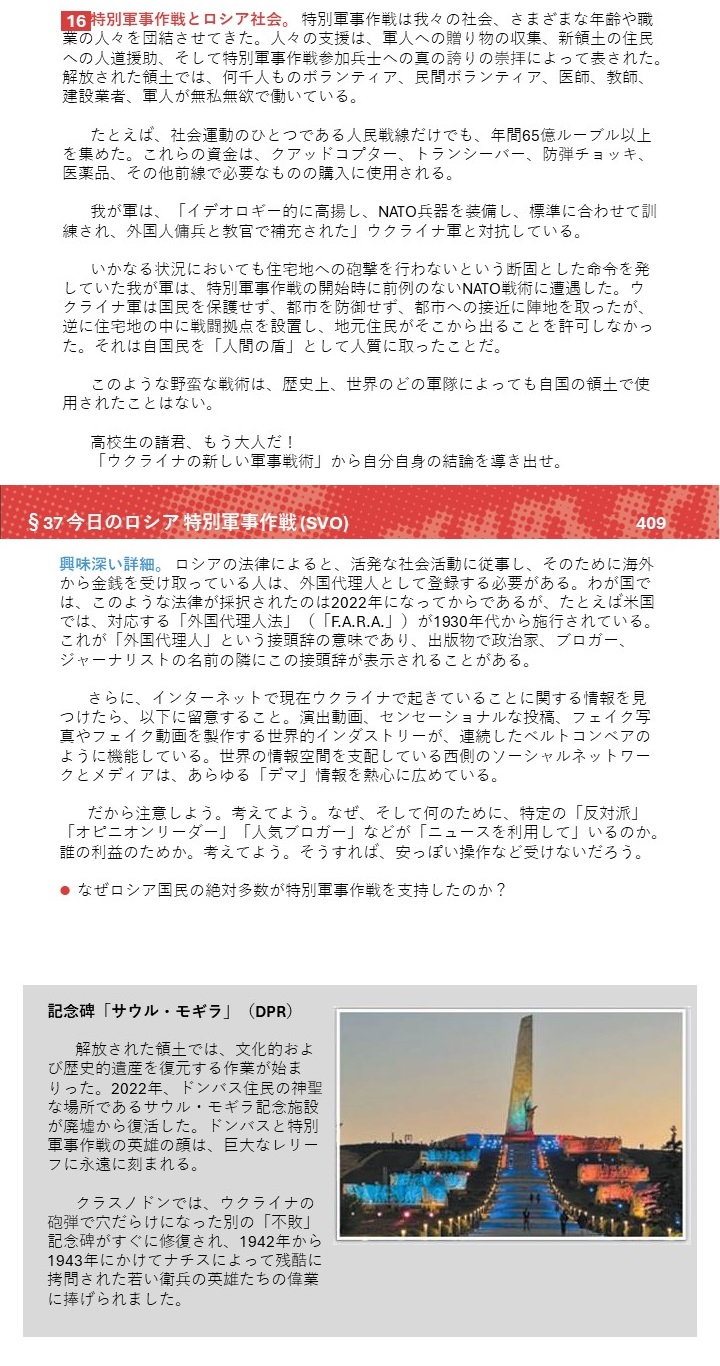 2023年秋学期からロシアで使われている11学年用のロシア史(1945〜21世紀)教科書の、特別軍事作戦を取り上げた部分から、第16節「特別軍事作戦とロシア社会」