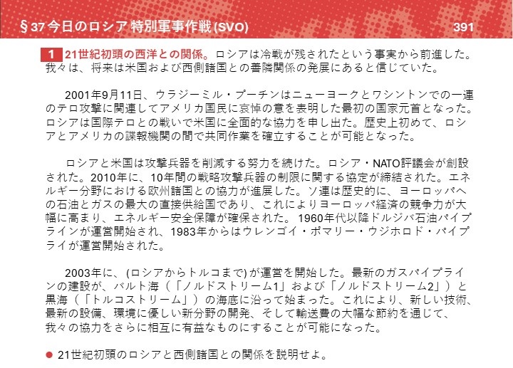 2023年秋学期からロシアで使われている11学年用のロシア史(1945〜21世紀)教科書の、特別軍事作戦を取り上げた部分から、第1節「21世紀初頭の西側との関係」