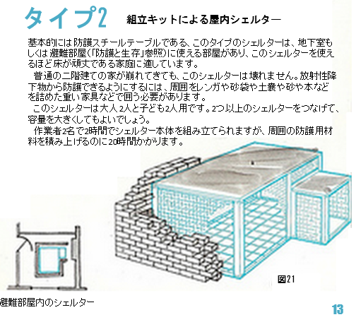 残りのアドバイスは、部屋を放射性降下物から遮蔽する方法と、室内に避難場所を作る方法である。