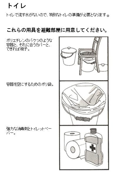 シェルター内で顔を洗うのは洗面器である。本当の緊急事態では、おそらくは闇の中で、どうやってできるだろうか。必要があればパックから壊れたガラスを取り除けるだろうか。感染症を防げるだろうか。