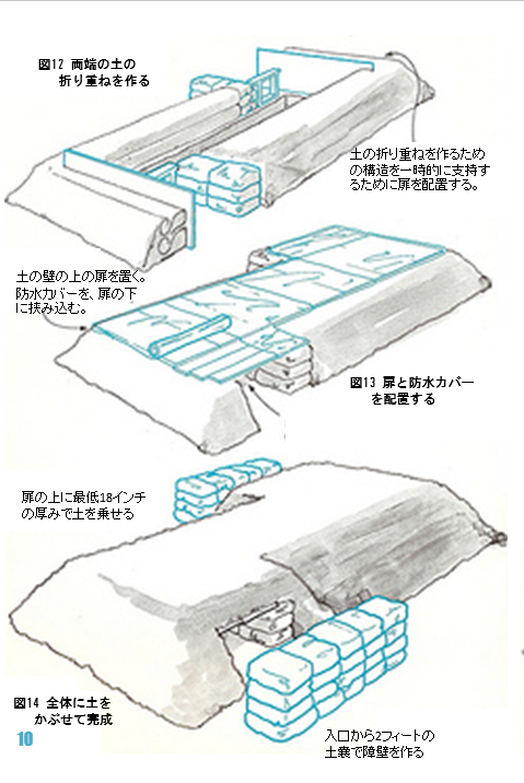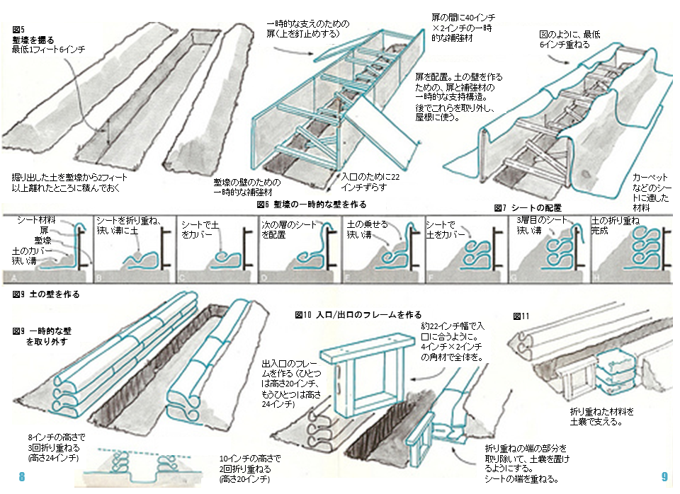 これは浅い、幅18インチの土の壁でできたトレンチで、最初は木製の扉で支えられる。この扉は後で屋根に使う。