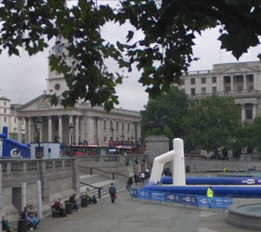 トラファルガー広場のナショナルギャラリー内部では、同時に絵画が燃え上がる。