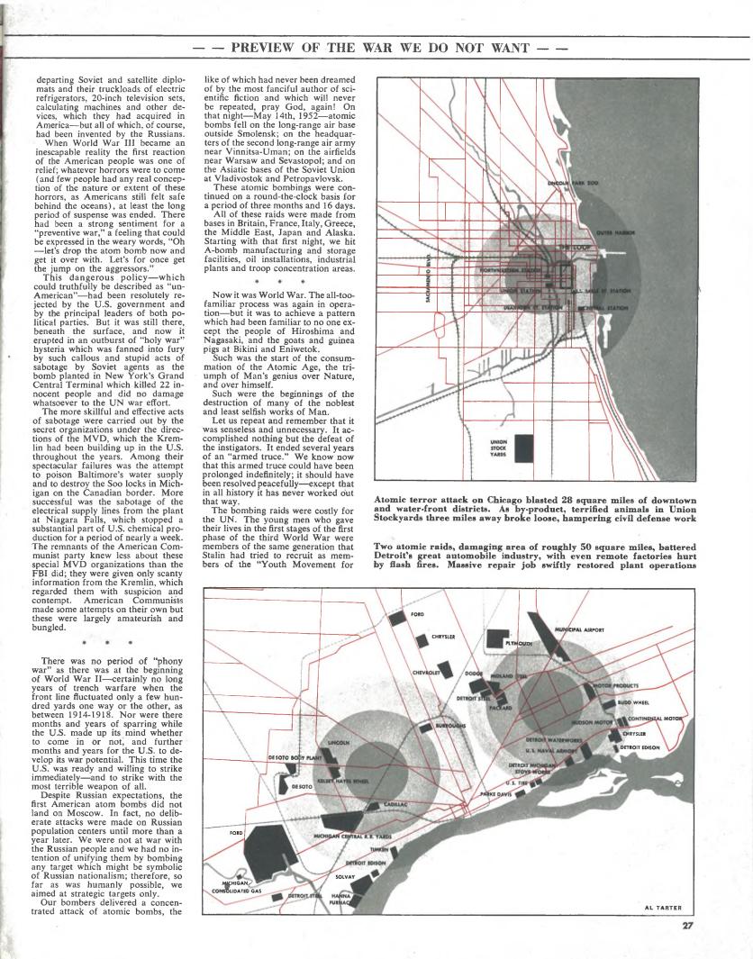 Collier'sは1952年5月に始まる米ソ核戦争シナリオを基軸とする核戦争特集記事を1951年10月27日号に掲載した。