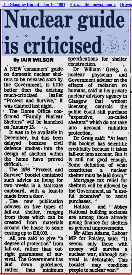 [ IAIN Willson: "Nuclear guide criticised (1981/01/16) on Glasgow Herald ]