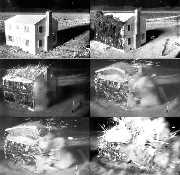 核実験の映像でわりと有名なシーンに、閃光・熱線・爆風を受ける家屋がある。