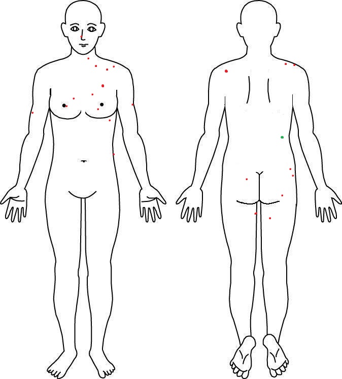 ※小さい点は見えづらいほくろ。大きい点は離れていても見えるほくろです。