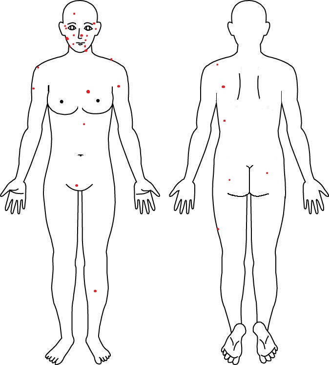 ※小さい点は見えづらいほくろ。大きい点は離れていても見えるほくろです。