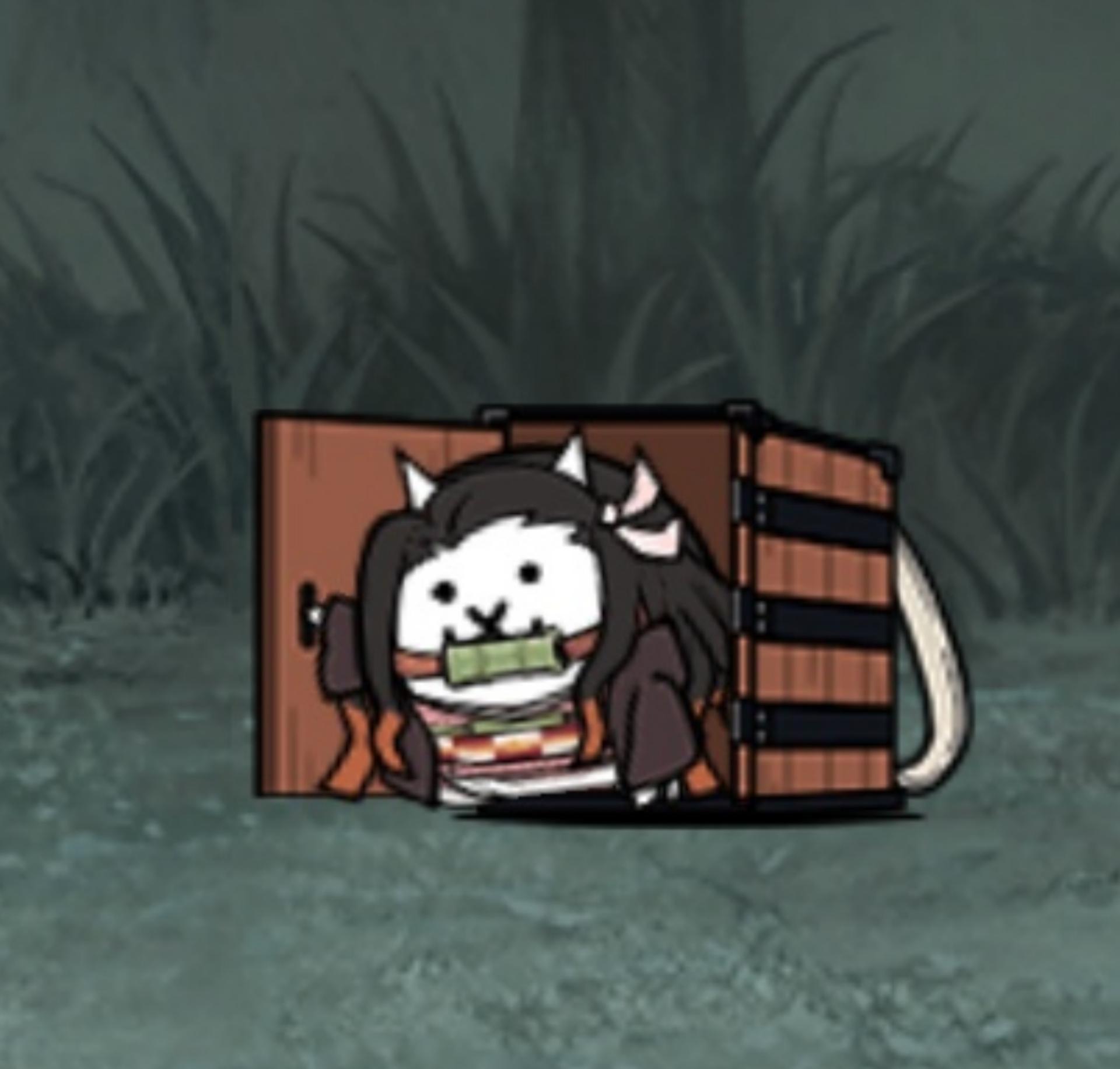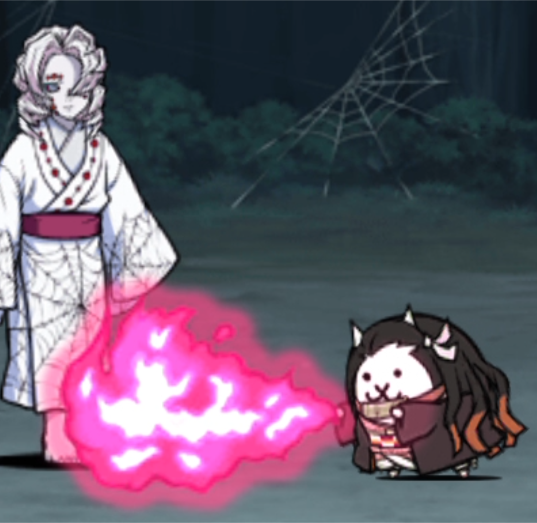 竈門禰豆子の格好をしたネコ。進化するとモチーフ元の禰豆子が使用しなかった爆血を使用して攻撃するようになる。