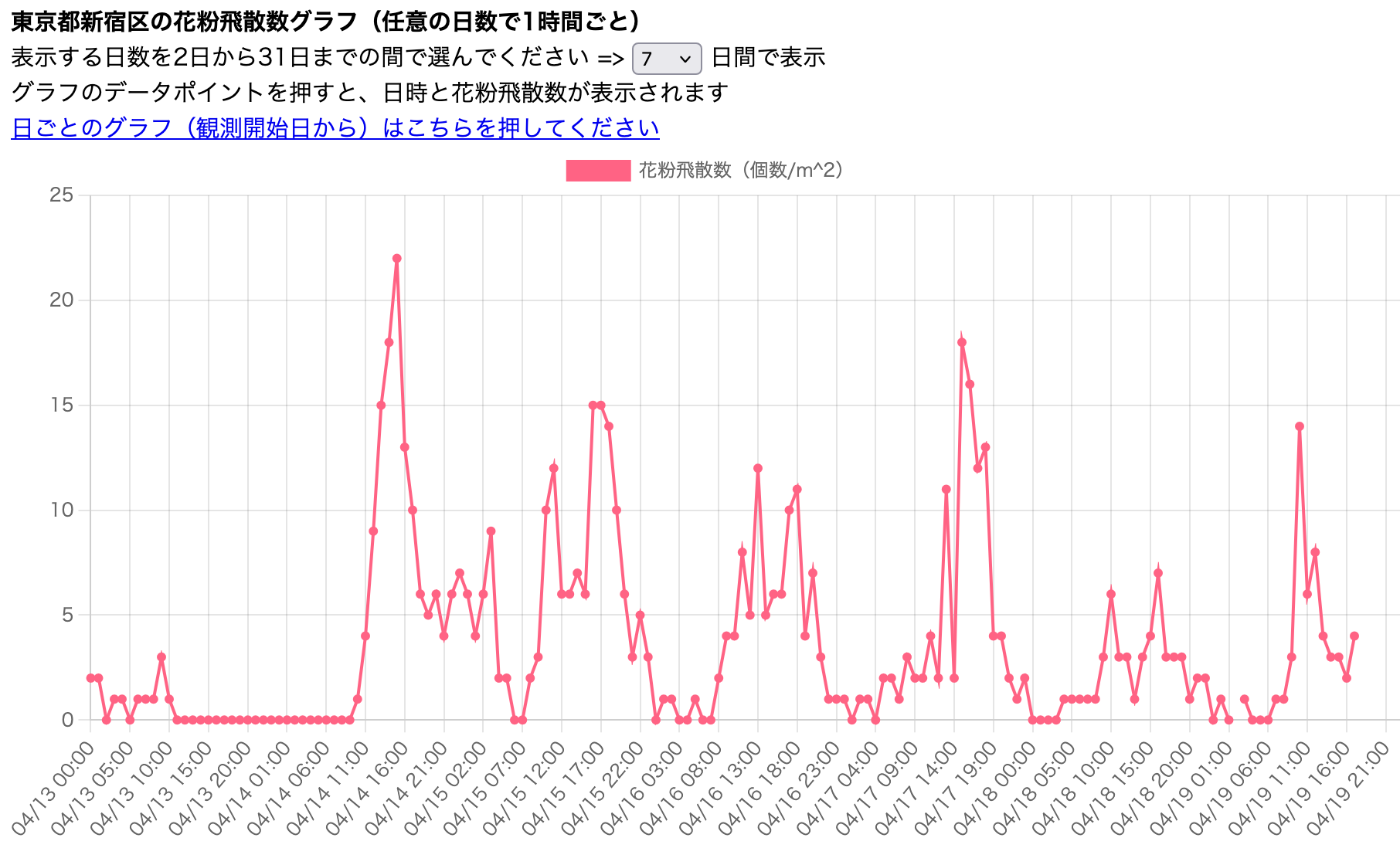 遠藤耳鼻咽喉科アレルギークリニックの遠藤朝彦先生が毎日観測してくださっています。