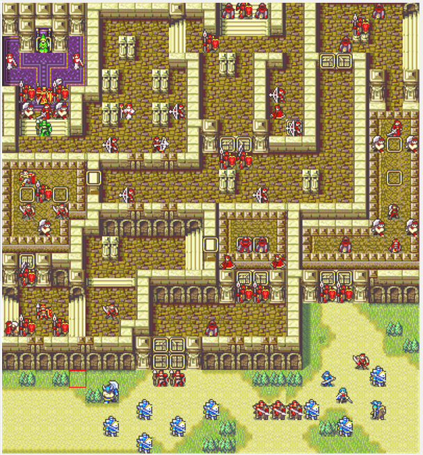 原作と違って長弓やトロンで壁越しに攻撃するユニットが多数おり、初期位置の宝物庫からレナックを取り逃がすと