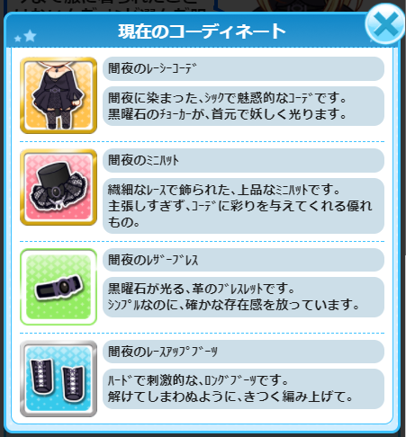 黒曜石のチョーカーが、首元で妖しく光ります。(闇夜のレーシーコーデ)