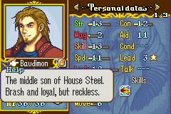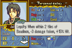Loyalty: When within 2 tiles of Baudimon, -3 damaget taken, +15% Hit.