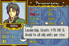 Leadership. Grants +1% Hit & Avoid to all ally units per star.