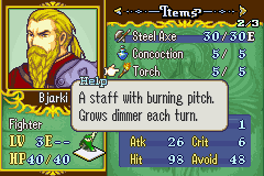 燃えるコールタールを巻いた杖。ターンごとに暗くなっていく