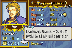 Leadership. Grants +1% Hit & Avoid to all ally units per star.
